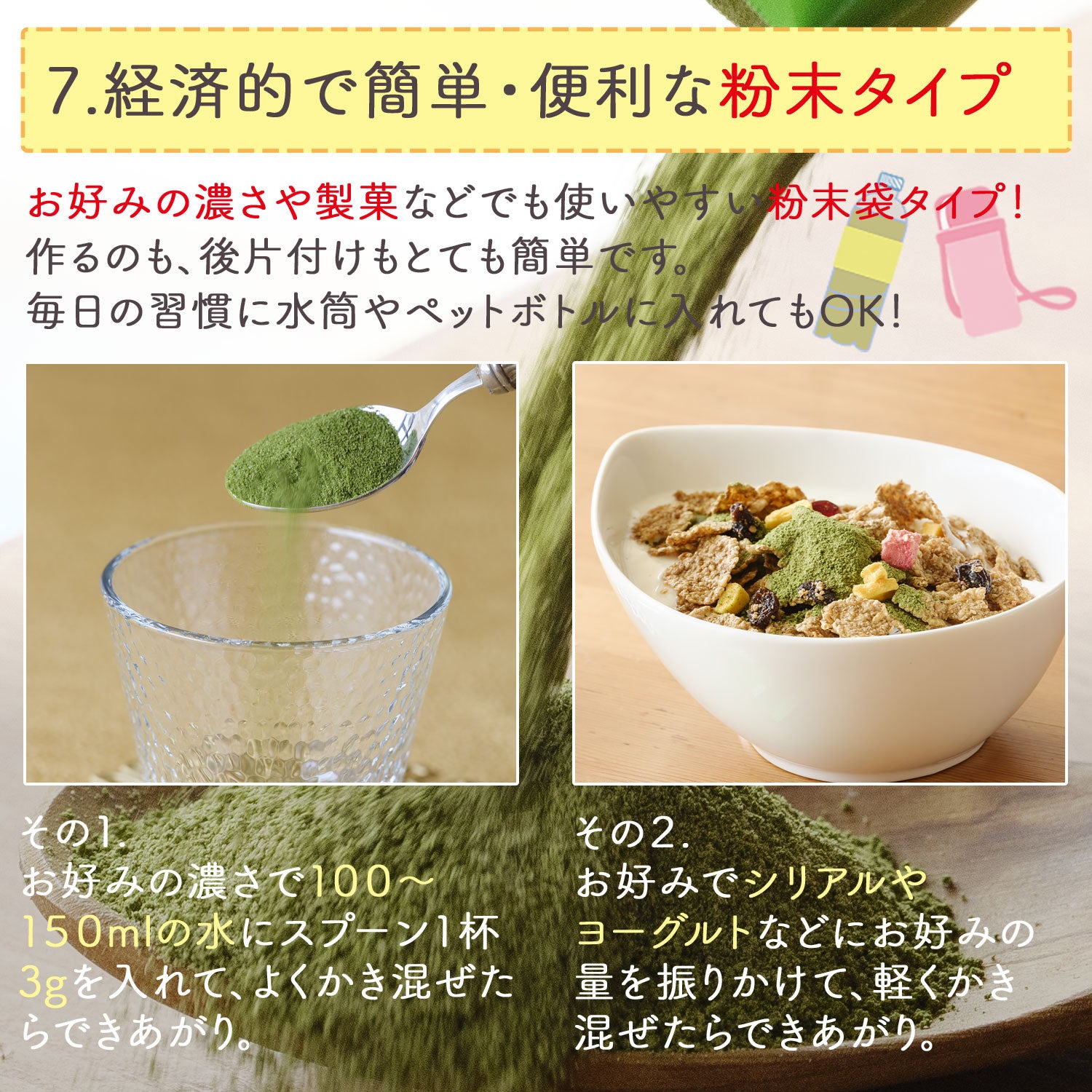元禄年間創業の老舗の宇治抹茶を選びぬき、それを青汁としてはありえない比率でブレンドして、本物の抹茶入り青汁に仕上げました。