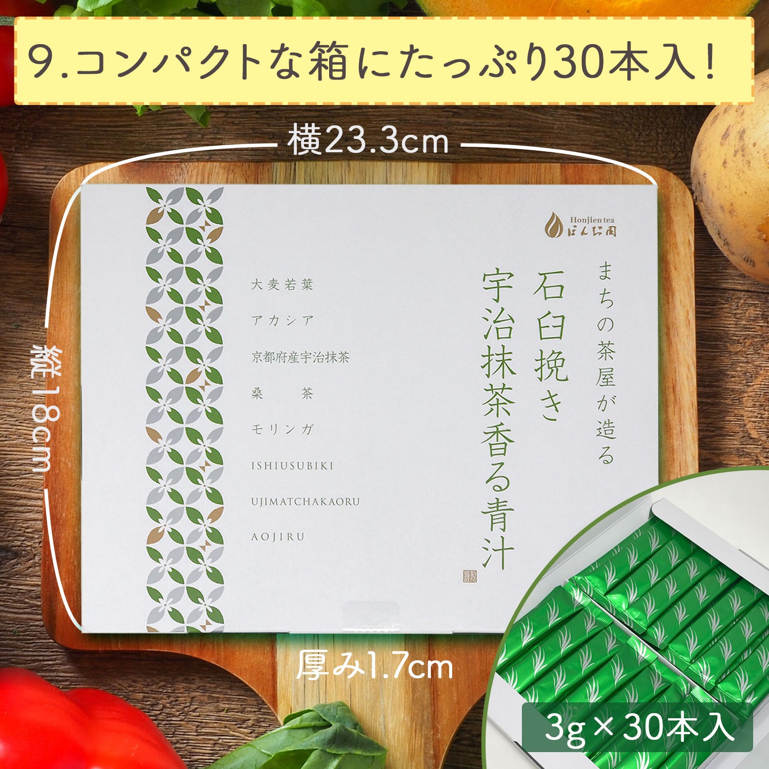 元禄年間創業の老舗の宇治抹茶を選びぬき、それを青汁としてはありえない比率でブレンドして、本物の抹茶入り青汁に仕上げました。