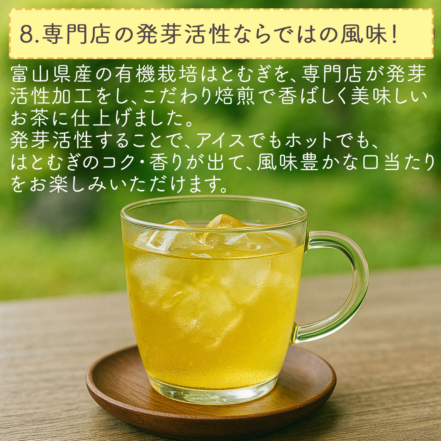 富山県産の発芽寸前まで活性化させた有機はとむぎが原料!