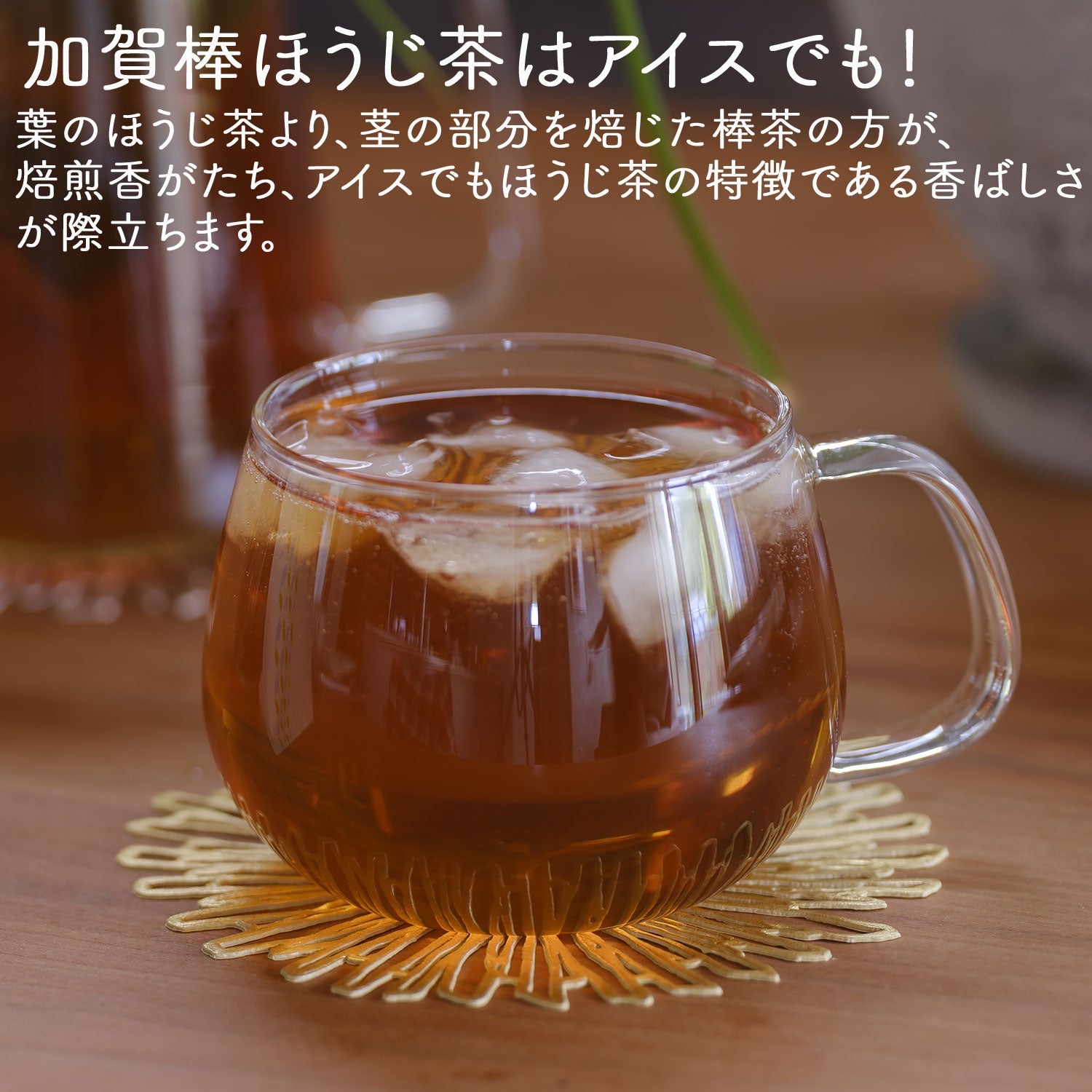 葉のほうじ茶より、茎の部分を焙じた棒茶の方が、焙煎香がたち、ほうじ茶の特徴である香ばしさが際立ちます。
