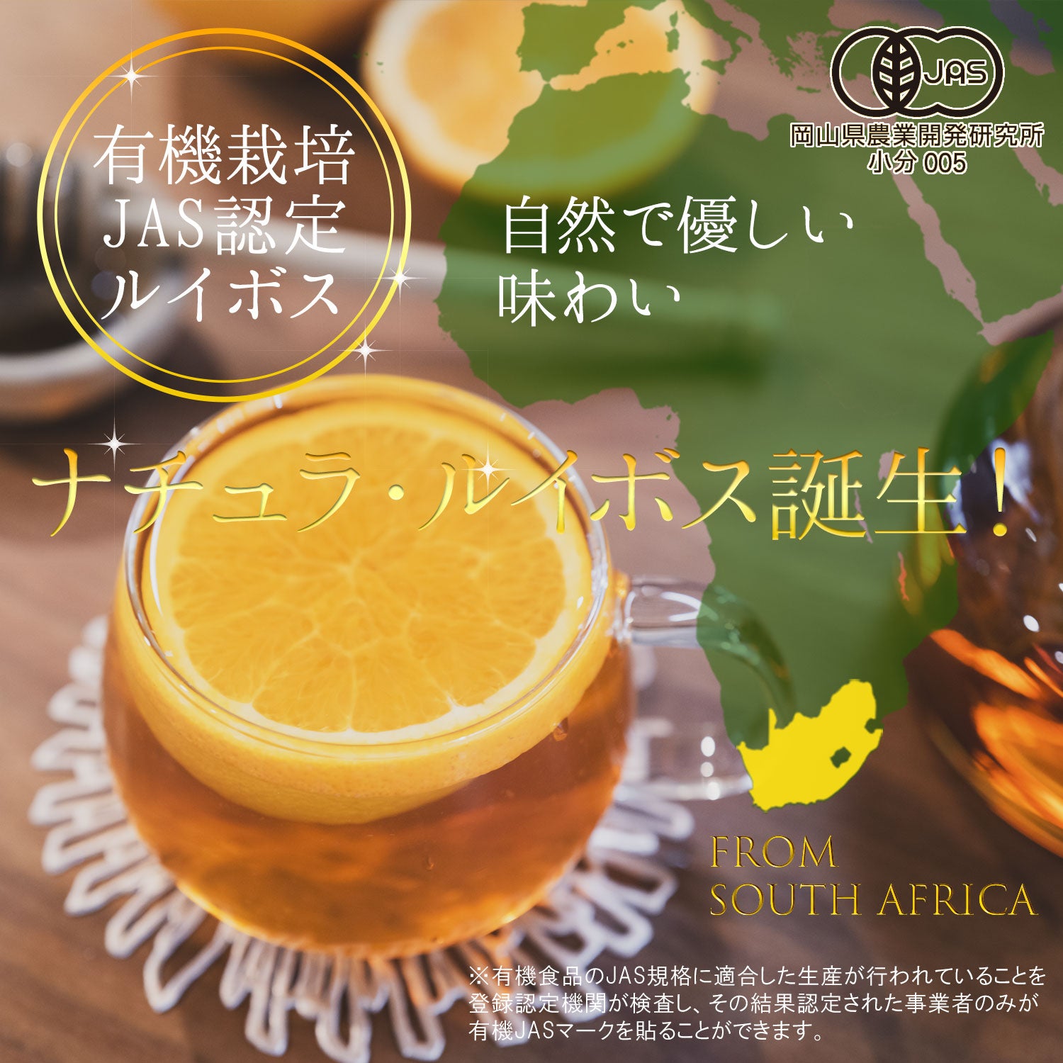 南アフリカの厳しい環境で育った生命力溢れる有機JAS認定!オーガニックルイボスティー100%を原料にして、加工は日本国内で行っています。残留農薬検査済みの原料を高温加熱処理をしています。