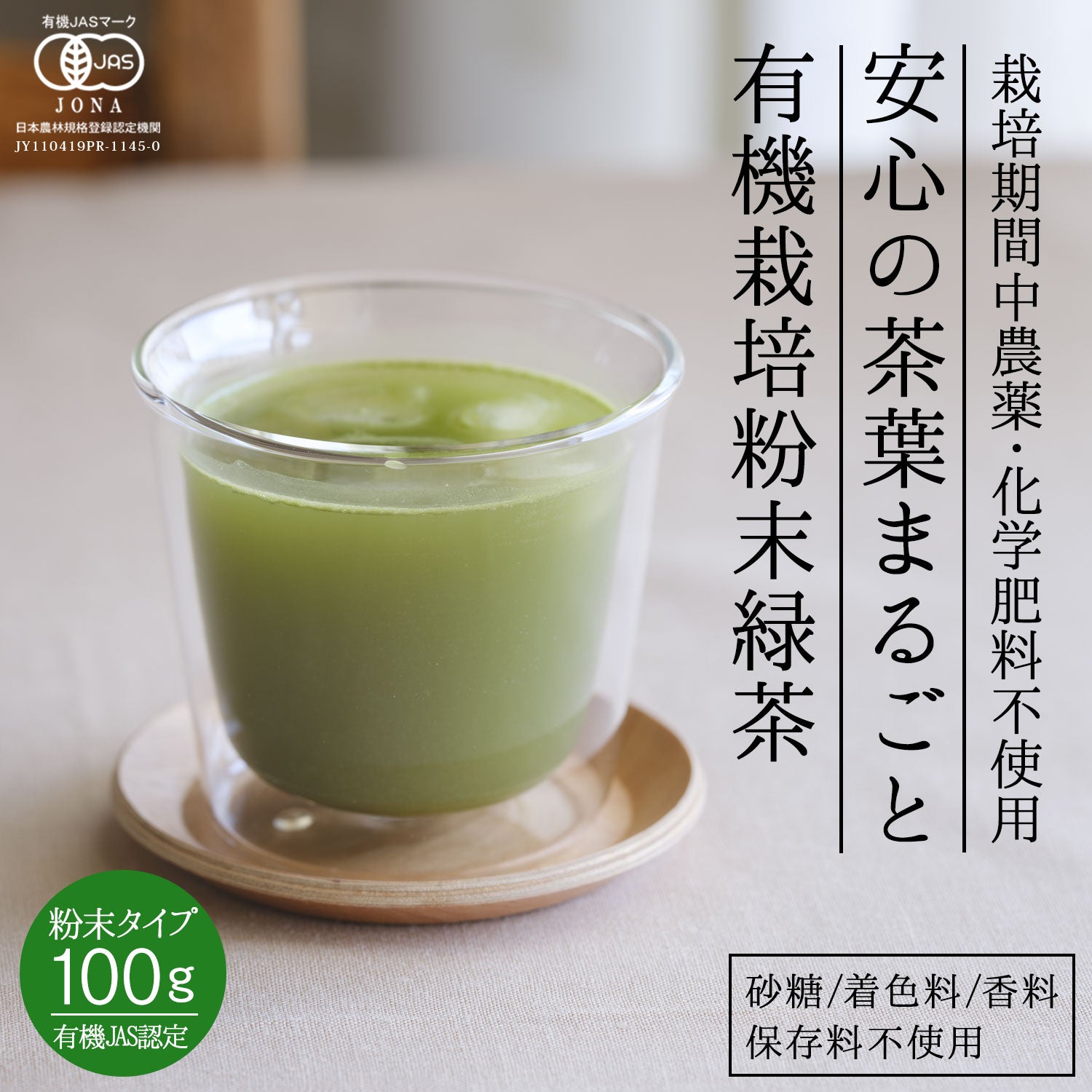 ![国産 有機粉末緑茶 100g [ 有機JAS認定 ]の茶葉100%](http://honjien.jp/cdn/shop/files/organic-greentea-e.jpg?v=1755596160&width=1445)