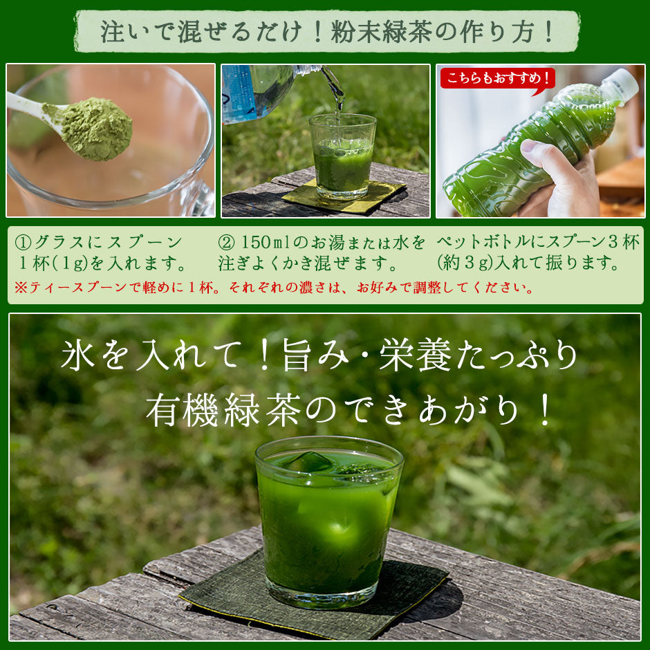 国産 有機粉末緑茶 100g [ 有機JAS認定 ]の茶葉100%