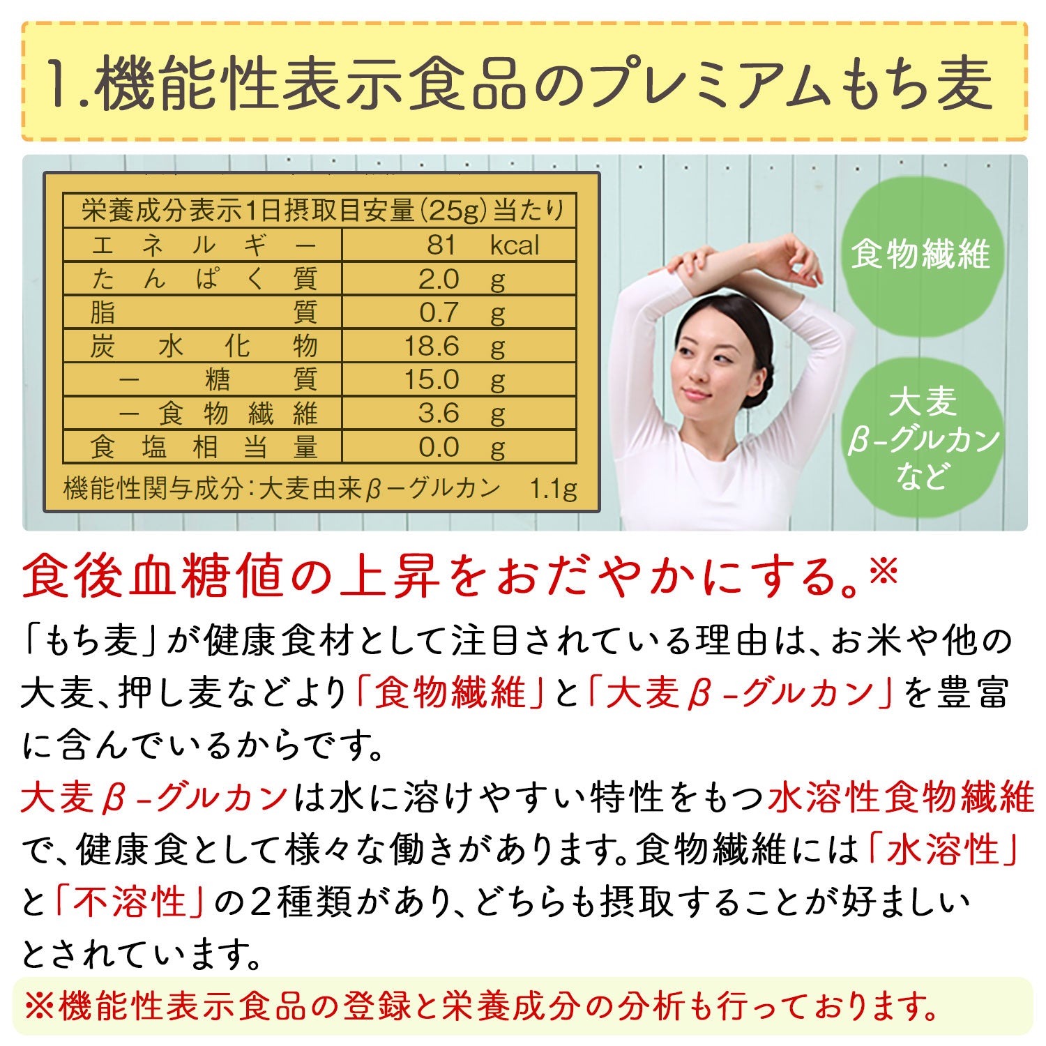 機能性関与成分:大麦由来βーグルカン 1.1g(1日摂取目安量25gあたり)