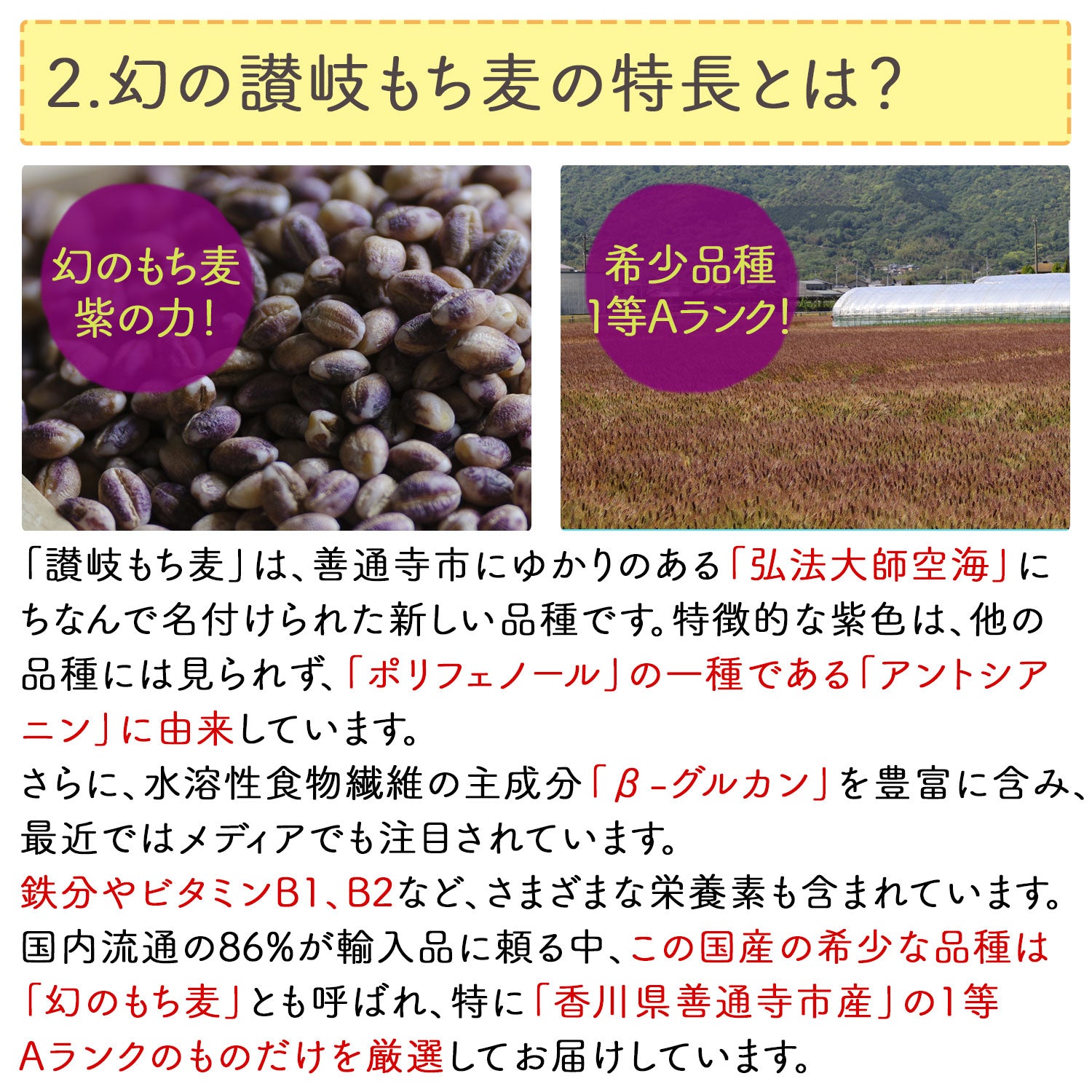 特に、発祥の地である「香川県善通寺市産」の1等Aランクのもち麦だけを厳選してお届けします。