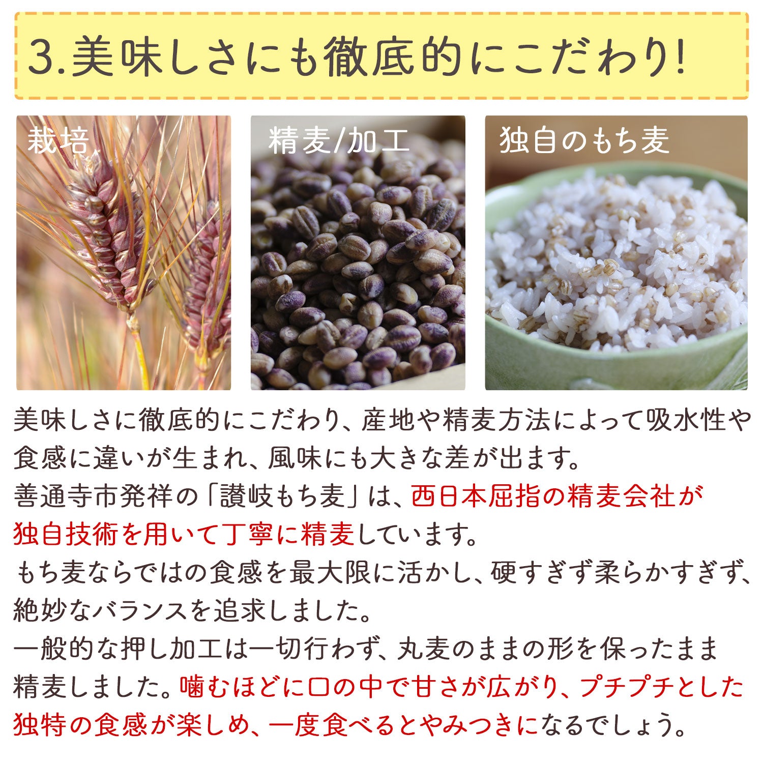 善通寺市発祥の「讃岐もち麦」は、西日本屈指の精麦会社が独自技術を用いて丁寧に精麦しています。