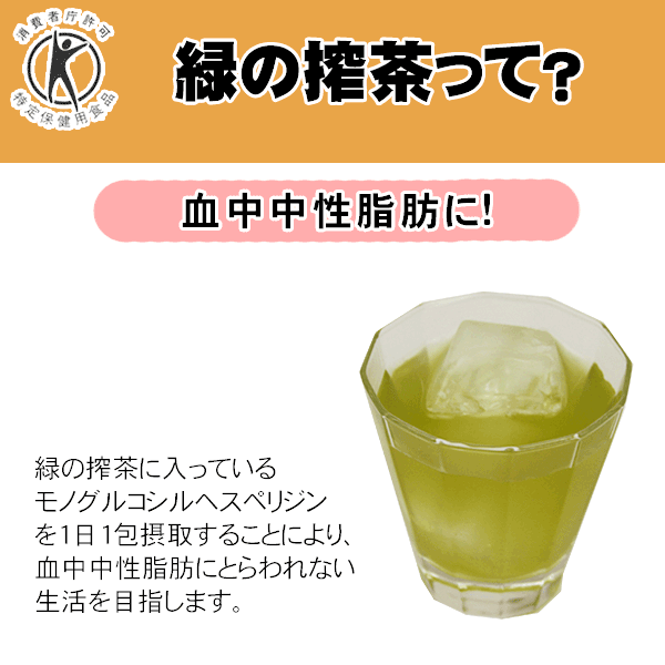 ≪キーワード≫[ トクホ ]中性脂肪が気になる方の「 緑の搾茶 」 4g x 30包 [ 特定保健用食品 ]< 粉末茶 粉末緑茶 個包装 スティックタイプ 脂肪 > P10 /セ/