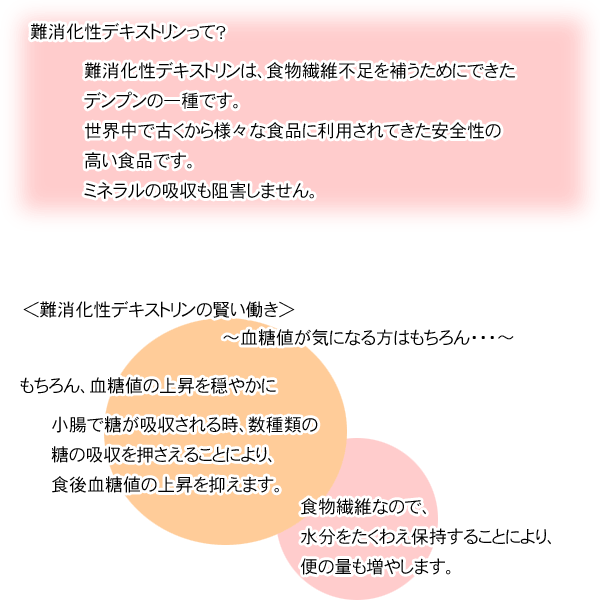 許可表示:本品は、食物繊維として難消化性デキストリンを含んでおり、食事に含まれる糖の吸収をおだやかにする働きがあります。食事とともにお飲みいただくことで、食後血糖値の上昇がゆるやかになる為、食後の血糖値が気になる方に適しています。